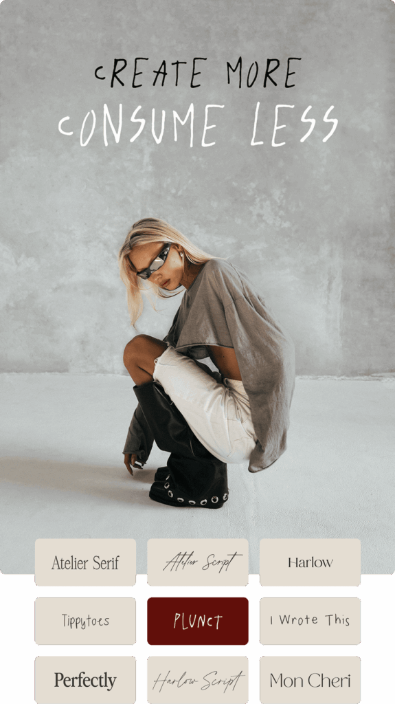 Your content isn’t just visuals, it’s how you say things. Choose from a curated set of fonts designed to match the tone you’re going for, from clean and minimal to bold and expressive. Add text that actually feels like part of the content, not an afterthought.